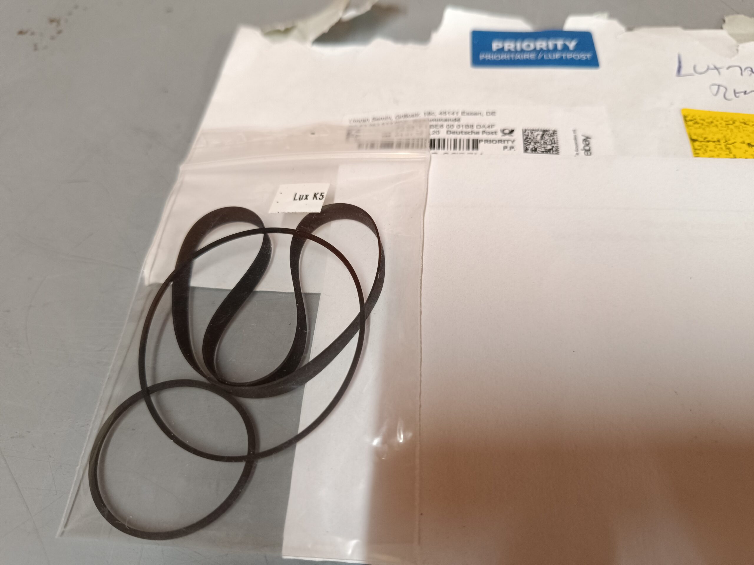 Luxman K-5 – Rem-sæt i god kvalitet / belt-kit of good quality. Uåbnet og har ikke været i brug. Består af 3 x remme.