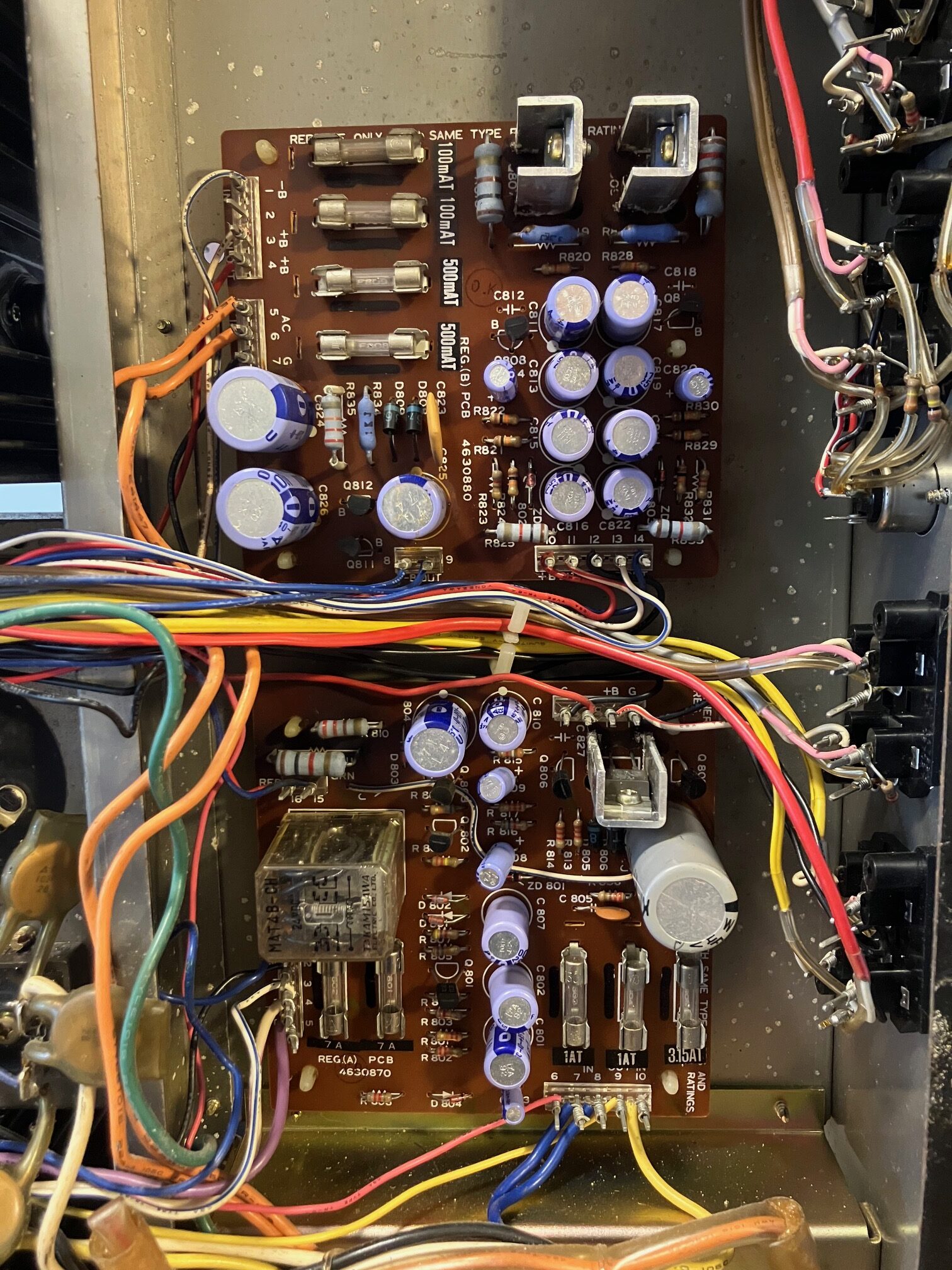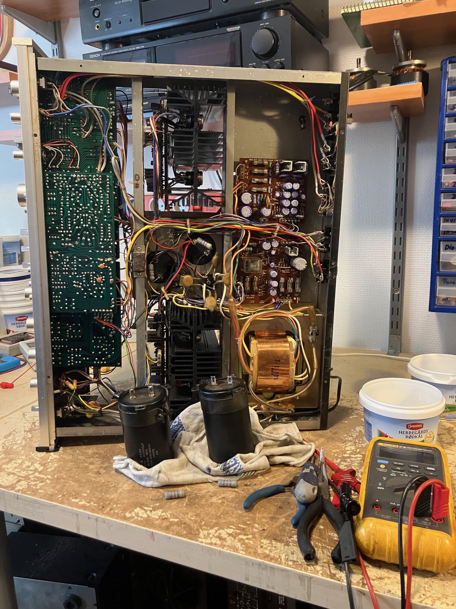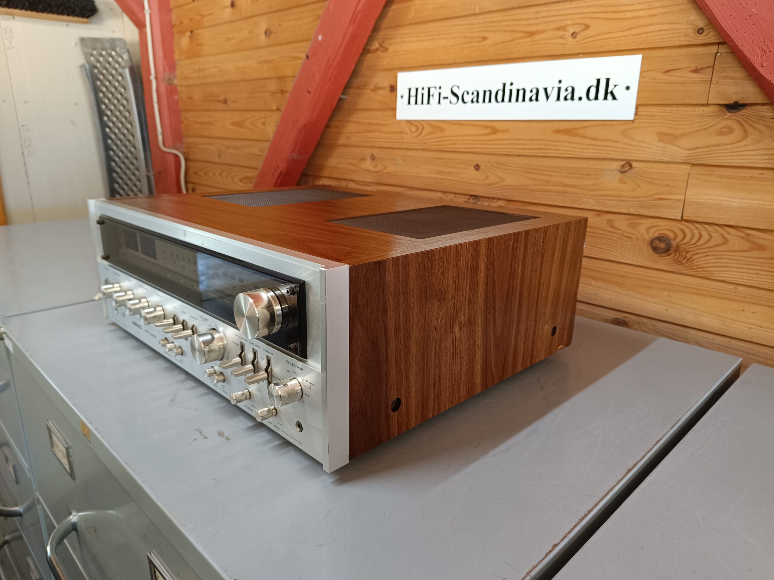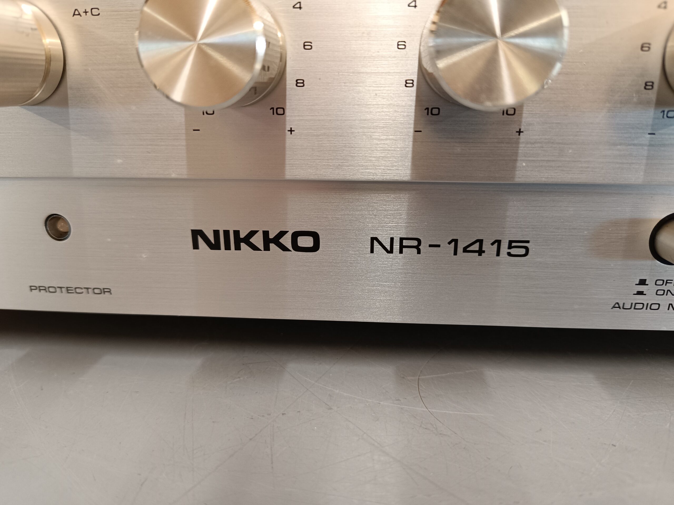 Meget kraftfuld og velspillende vintage receiver fra japanske Nikko model NR-1415. Årgang ca. 1978. En af de allerbedste og største vintage receivere på markedet. Meget flot og velholdt stand efter alder – kun med få brugsspor. Netop istandsat af fagkyndig med gennemgående renovering – herunder blandt andet renovering af power-supply board, protection-board samt servicering af equalizer-board. Der er desuden installeret nye højttaler-relæer samt de 2 store power elektrolytter er udskiftet. Herudover er resten af receiveren gennemgået fra a-z, og efterfølgende serviceret samt justeret ind. Resultatet er en yderst velspillende vintage receiver i den absolut tungeste klasse – navnlig klassen af monster-receivere. Nikko NR-1415 spiller med masser af power og overskud og har en super lækker varm og kraftfuld vintage lyd – en seriøs udfordrer til Marantz 2385, Pioneer SX-1250, SX-1280, Sansui 9090Db med flere.