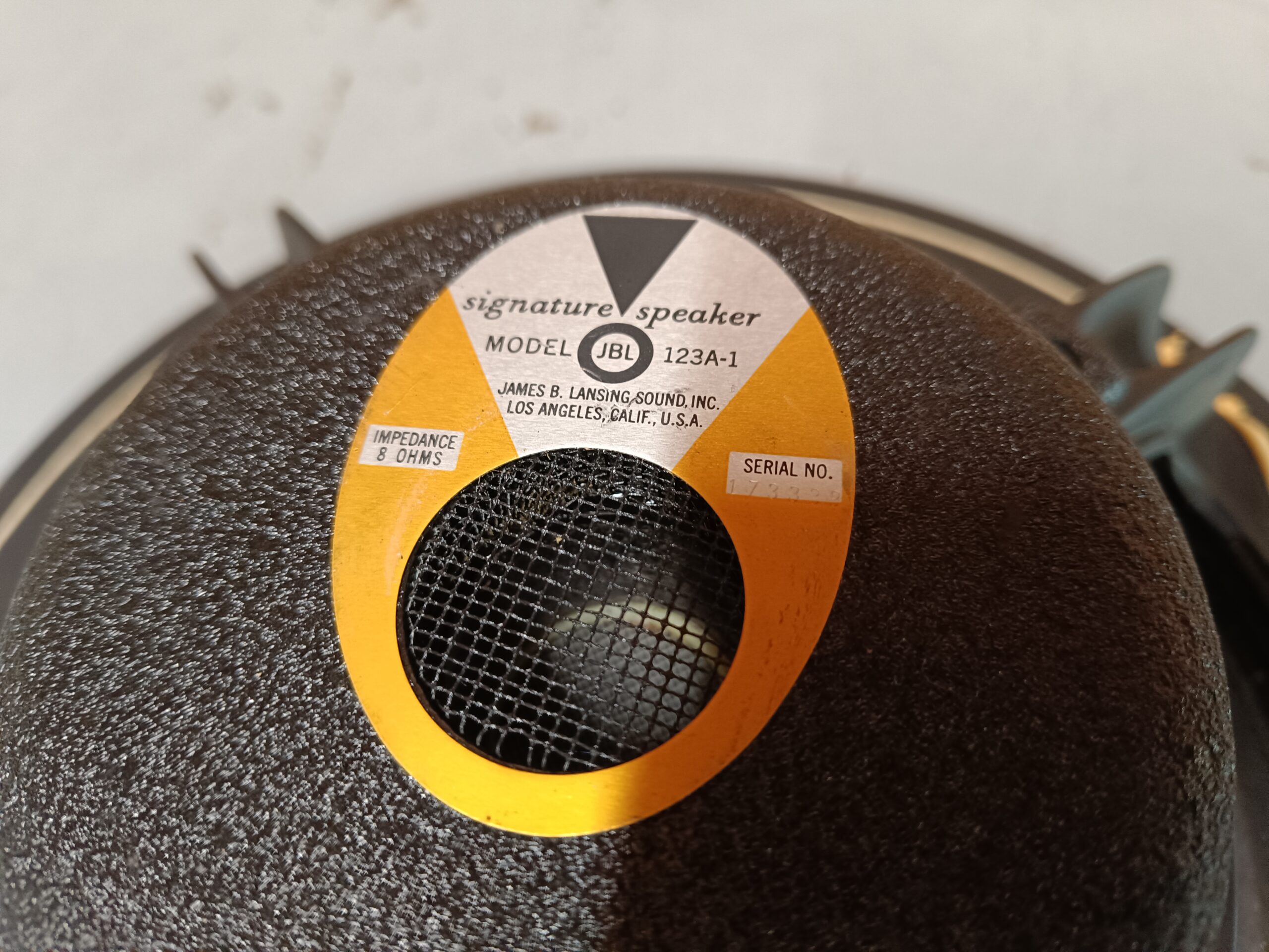 Original 12″ JBL 123A-1 Woofer – From JBL L100 Century. Not good looking – has been repaired at some time, but in working condition – original unit. From a set of vintage JBL L100 Century speakers – suitable for several JBL vintage speakers. Original unit and extremely rare up for sale. Heavy high quality original item.
