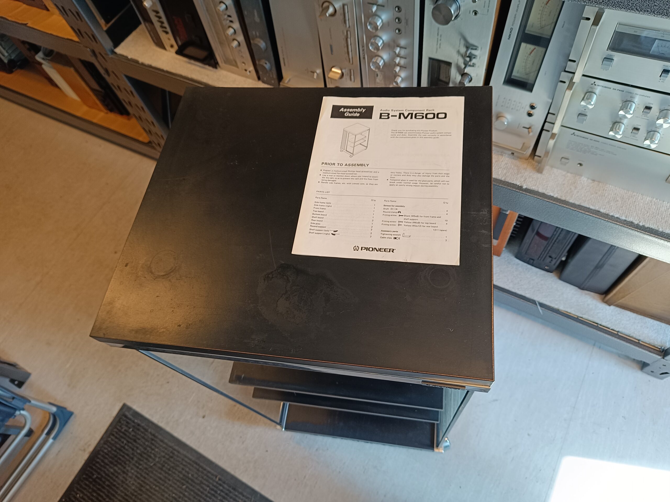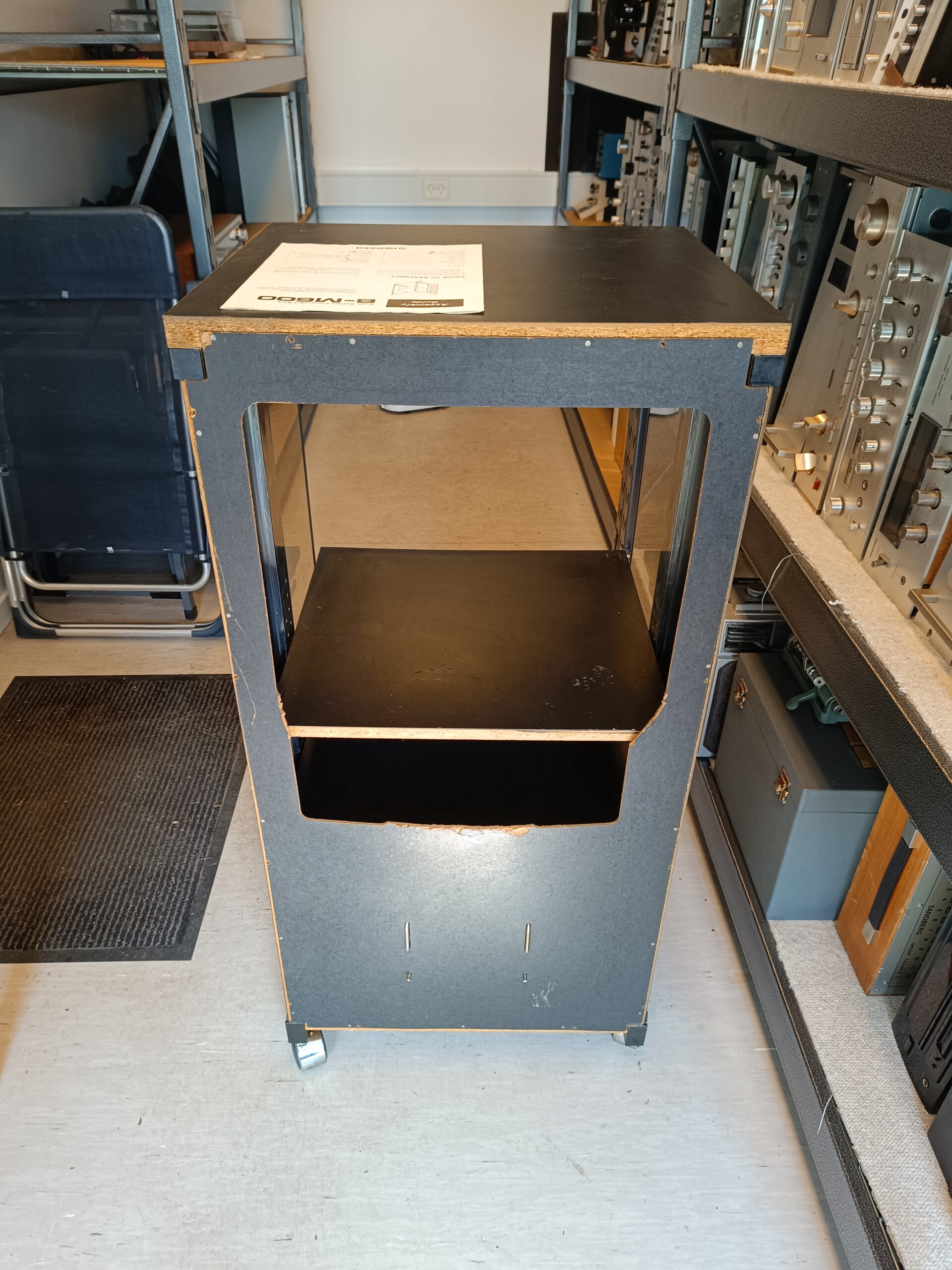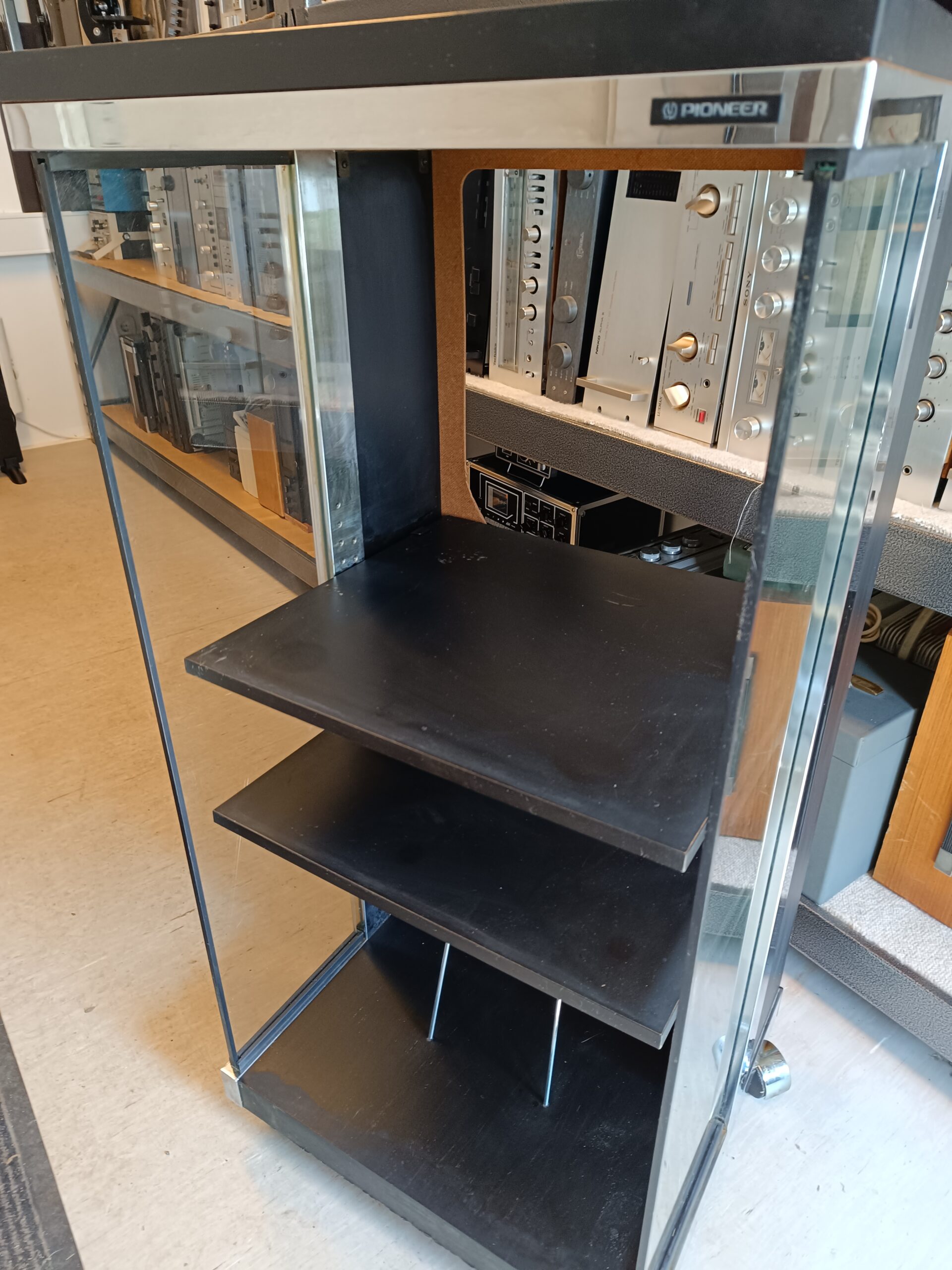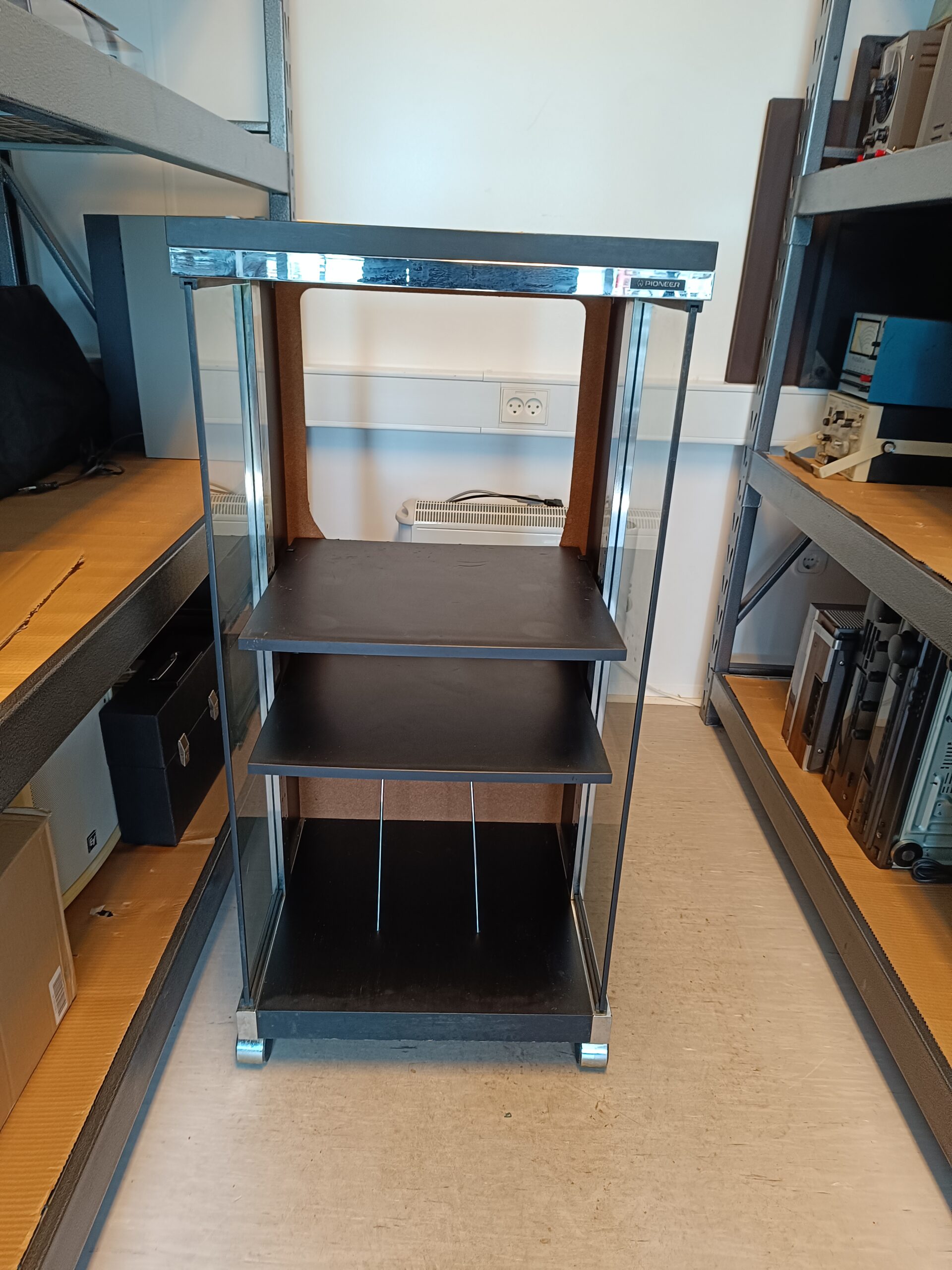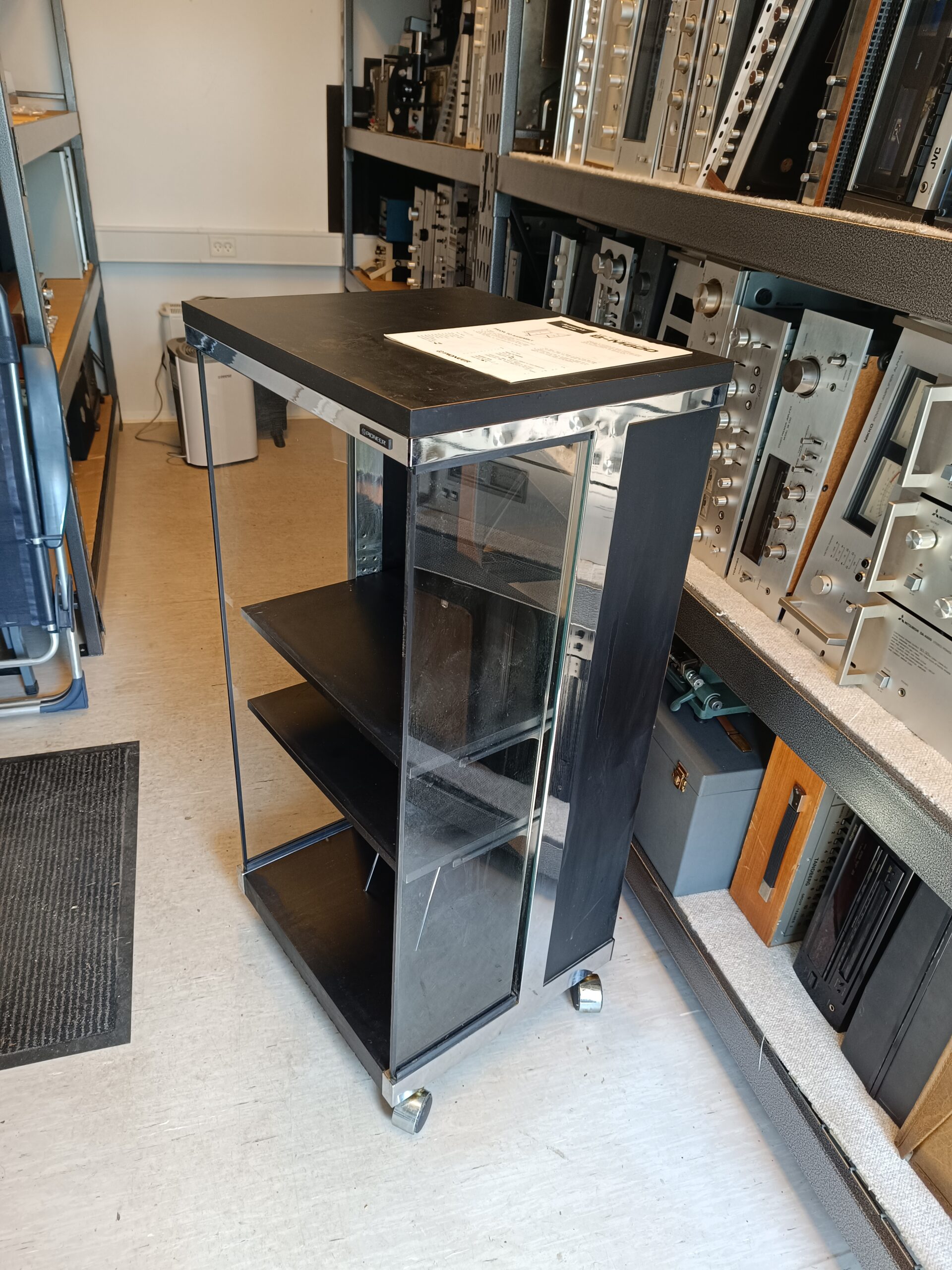 Original Pioneer B-M600 – Audio System Component Rack. Pæn og velholdt stand. Rack-skab på hjul til Pioneer setup. 1 ejers. Inkl. org. manual.